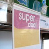 SNAPRAIL Aluminium poster holder. Can be cut to size. AISLE OF VALUE HANGER Snaprail with hooks and hole. For A0 poster in Pak 'n' Save. |